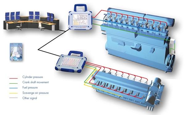 The engine Monitoring, which can be done by portable or fixed devices, collects data in a simultaneous and continuous way from all the signal sources, the pressure of combustion and injection, injection timing , air blast pressure, angle crankshaft, etc. The system delivers these data in real-time for the analysis and diagnosis of the engine, so the response is immediate.