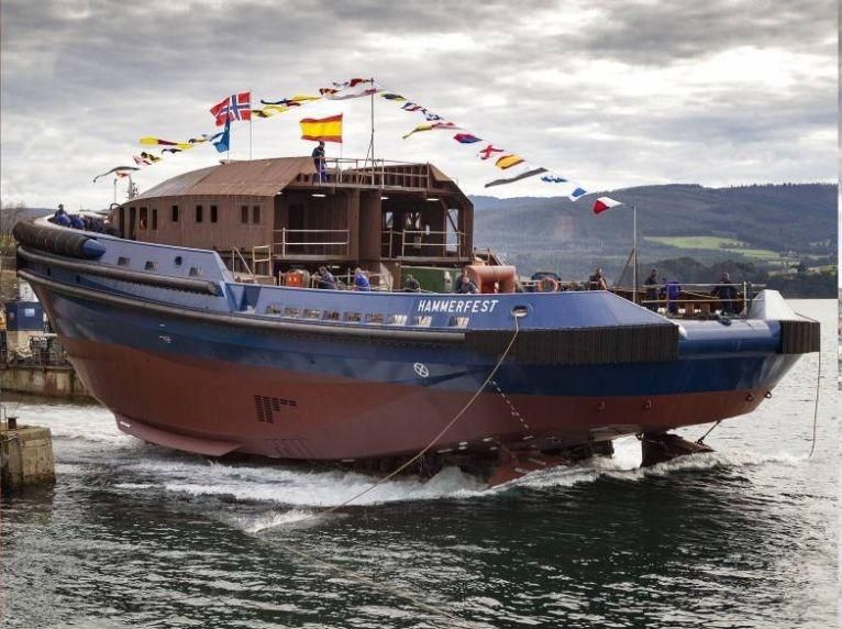Today at Gondan Shipyard in Figueras, at high tide, the third Dual Fueled tug ever built in Europe –the last of a series of three currently under construction at Gondan for the Norwegian shipowner Østensjø Rederi - has been successfully launched. The event was attended by representatives from the ship-owner, from the charterer of the vessels – Statoil - and from the Canadian designer Robert Allan Ltd.