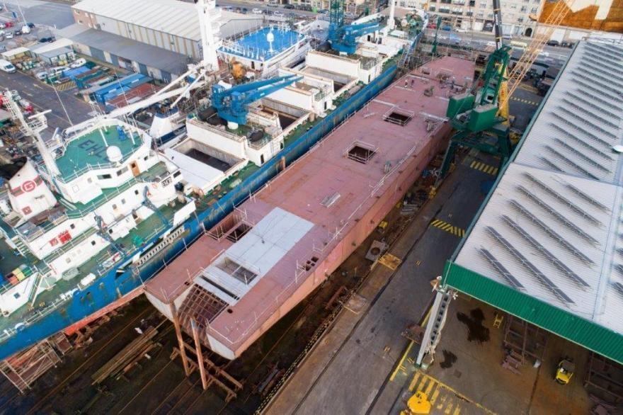 Keel laying completed and “Prion” trawler first large blocks at Nodosa