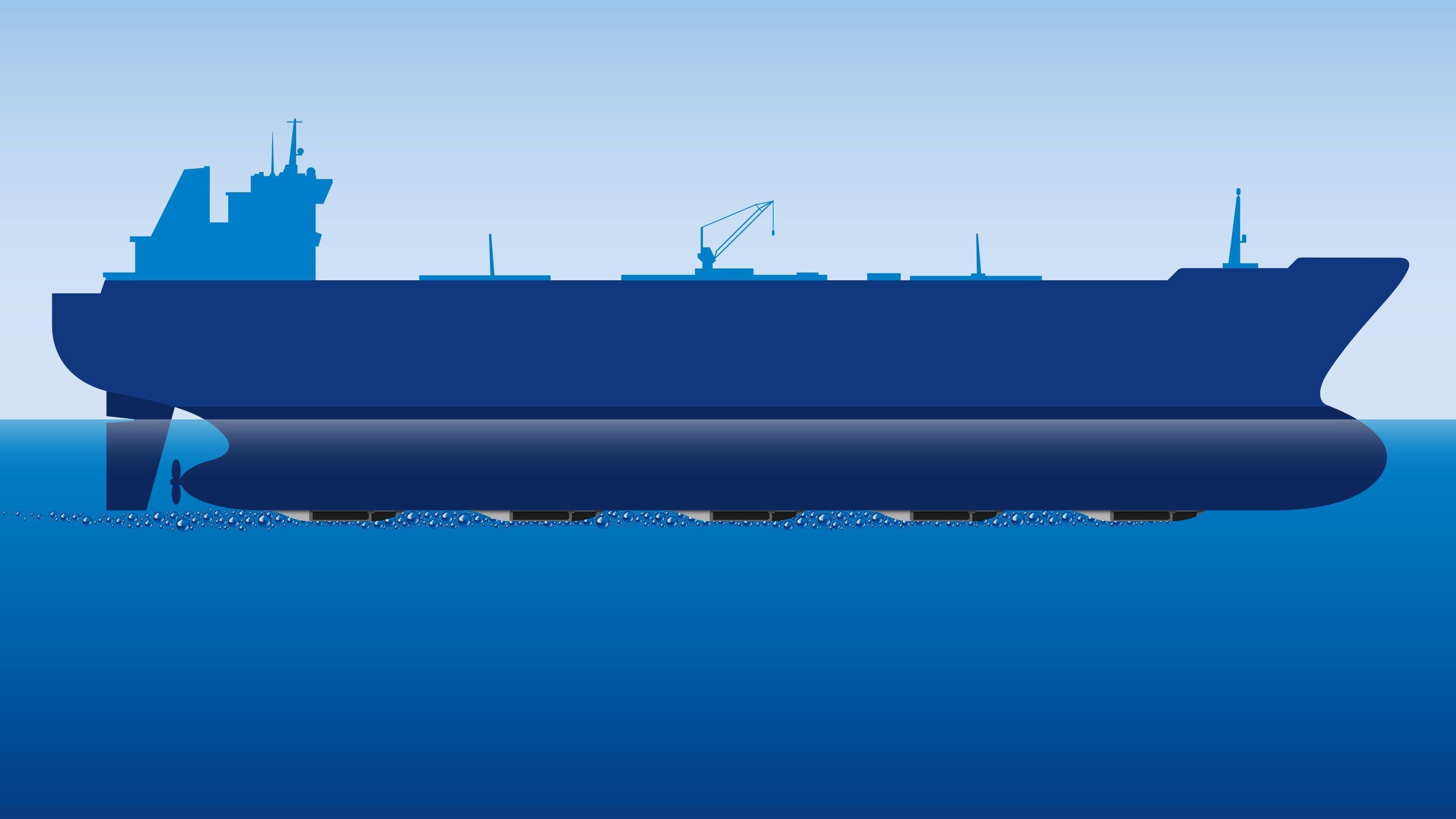 A ship’s friction when sailing is the most significant driver of its fuel consumption representing up to 60 per cent of a vessel’s operating expenditures. The advanced fluidic air lubrication system from MPS combines fluidics and air lubrication technologies to offer significant reductions in the ship’s friction when sailing. The system is unique in its use of fluidics to generate micro air bubbles with a high degree of control, maintaining an air layer that covers the full flat bottom area of the vessel for maximum effectiveness. The reduction of frictional resistance working on the ship's hull results in reduced fuel consumption.