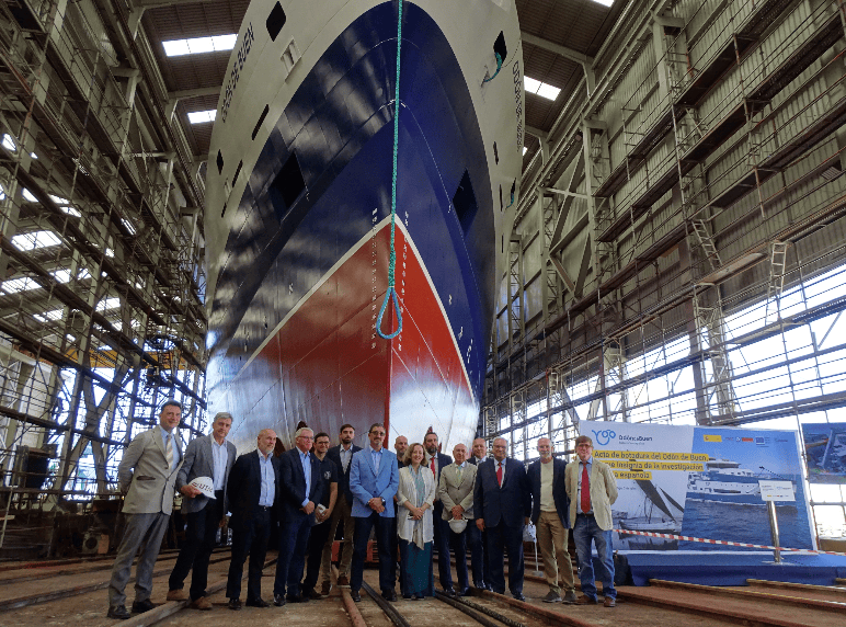 The act, the second milestone of the "Odón de Buen" after the keel laying held on October 15, brought together the highest representatives of the CSIC, IEO as well as Grupo Armón, who stressed the launching also represents a turning point for the company in its firm commitment to be a benchmark in the construction of oceanographics.