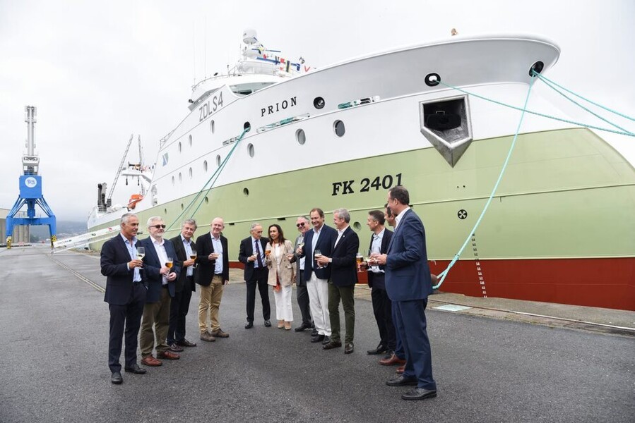 Its delivery was formalised at an event held in Port of Marín, chaired by Xunta de Galicia president, Mr Alfonso Rueda, and attended by Jose Puerta Prado as President of PESCAPUERTA Group, Stuart Wallace representing FORTUNA Group, and José Ramón Regueira on behalf of NODOSA. The event was attended by some 400 guests, including employees of the shipyard and the ship-owning companies, clients, suppliers and common collaborators, as well as several authorities. Mrs Margarita Prado and Mrs Lilian Wallace acted as ship’s launching godmothers.