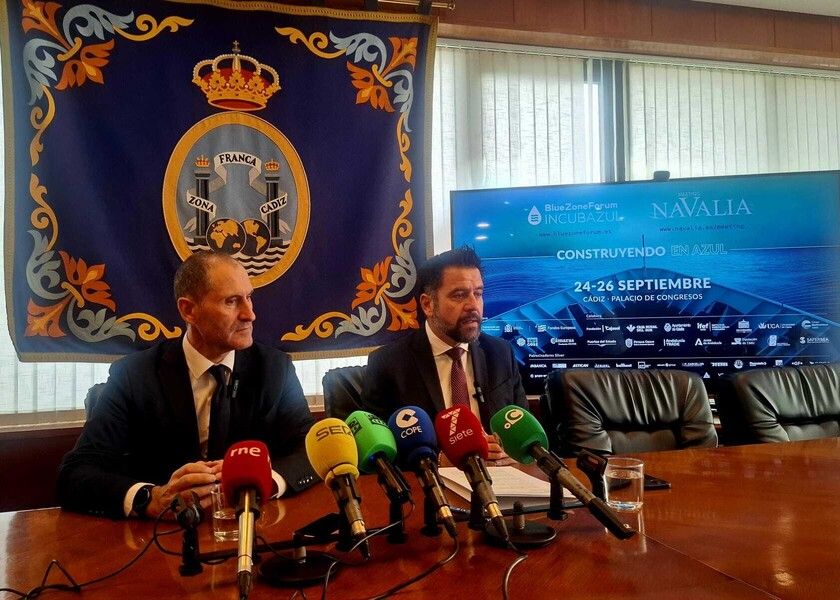 El delegado del Estado, Fran González, y el CEO de Navalia, Javier Arnau, han ofrecido detalles sobre el evento de Economía Azul y construcción naval que celebran conjuntamente del 24 al 26 de septiembre en el Palacio de Congresos de Cádiz