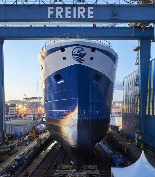 El jefe del Ejecutivo, Pedro Sánchez, presidió una ceremonia en la que auguró nuevos contratos para los astilleros y en la que la reina Sofía fue la madrina del nuevo buque